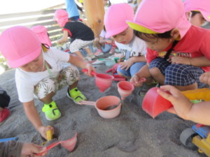 2025年10月8日 お友達と遊ぶの楽しいね☺️ すいすい走ろう 水曜日! 今日は運動会ごっこがありました。 どの子も元気モリモリさんで楽しんでいましたよ☺️✨️ ももさんは、出番までお部屋遊び♬ 「せんせーい!見てみて~!!できた!」と カエルを高く積んでみたよ🐸 その後、大好きなお砂遊び🍲 お友達と一緒にお鍋に砂を入れて… 楽しいクッキング! 美味しそうなお料理たくさん作れたね🍴💕 Tweet Share