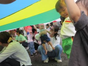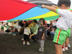 2025年10月15日 アーシャ運動会 今日は支援室アーシャの運動会があり、 たくさんのお友達が遊びに来てもらえました。 もも1組・2組の表現遊びをみてもらったり、 玉入れ、つなひきを アーシャのお友達VSこども園のお友達で 楽しんだりしました。 アーシャVSあかぐみの玉入れ。 お父さんお母さんにだっこしてもらって た~くさんの玉が入ったね。 アーシャVSみどりぐみのつなひき。 アーシャのお友達もみどりぐみのお友達も 優しい気持ちでよーいしょ!よーいしょ! ひっぱりっこをしたよ。 きいぐみのお友達に屋根を作ってもらって パラバルーンの中に入ったり、 バンザイして触ったりしたよ。 最後は、アンパンマンのおみやげまで、 よーいどん! みんな、がんばりました💮 最後までご参加頂きまして、 ありがとうございました。 Tweet Share