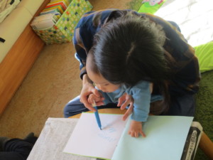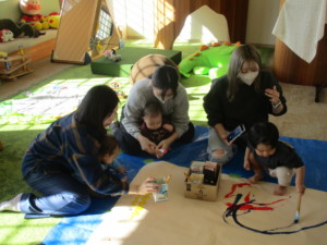 2025年12月12日 おえかきあそび🖌️ 今日は支援室でおえかきあそびがあり、 ペンやクレパスで描きました。 初めてお絵かきを経験されるおともだちもみえ、 色を変えて楽しんでいました。 お母さんに手を添えてもらい、 描いた線をじっと見ているお友達も いました。 大きな紙にみんなで絵の具あそびもしました。 ぐるぐる…大胆に描いたり、 色が混じるのを楽しんだりしました。 雪だるまの表紙に お母さんにお名前や年齢などを書いてもらって おえかきブックになりました♡ 本日もご参加頂きまして ありがとうございました。 また遊びにきてくださいね。 Tweet Share