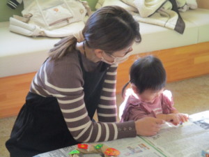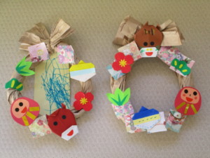 2025年12月22日 お正月の製作① 今日は支援室で お正月の製作:しめなわを作りました。 来年の干支うま🐎 だるまにシールを貼って お顔を作ったり、 松竹梅やこまを貼ったりして自由に飾りました。 しめなわを見つけて、 ずり這いで見に来てもらえる お友達もいましたよ♡ 製作後は、支援室や園庭で自由遊び(^^♪🎵 支援室では、手遊びをしたり絵本を読んだりして なかよしさんのお友達がいましたよ💕 かわいらしい しめなわが出来上がりました🐎✨️ 本日もご参加頂きまして ありがとうございました。 また遊びに来てくださいね。 Tweet Share