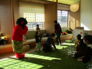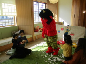 2026年2月3日 豆まき② 今日は支援室で 昨日に続き、豆まきをしました。 鬼はどっちかな? 豆まきに使う豆はどっちかな? 紙芝居を見てから、 豆まきごっこをしました。 そこに、大きな赤鬼が現れ… おにはそと~ 体の中の悪い鬼を追い出し、 ふくはうち~ 幸せをよびこみました。 お母さんにしがみつくお友達、 支援室のトンネルに隠れてしまうお友達、 鬼さんと仲良しさんになれるお友達がいました。 暦の上では、明日から春✨️ 暖かくなる日が待ち遠しいですね。 本日もご参加いただきまして、 ありがとうございました。 また遊びに来てくださいね♫ Tweet Share